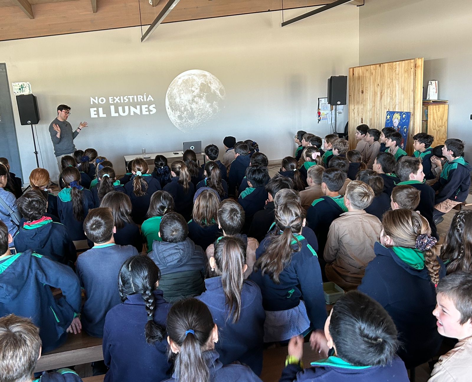 El Centro de Astrofísica y Tecnologías Afines (CATA) realizó la charla “¿Y si nunca hubiera existido la Luna?” al Colegio Pedregales de Colina, donde más de 80 estudiantes de tercero a quinto básico participaron en la actividad dirigida por el astrónomo José Utreras.