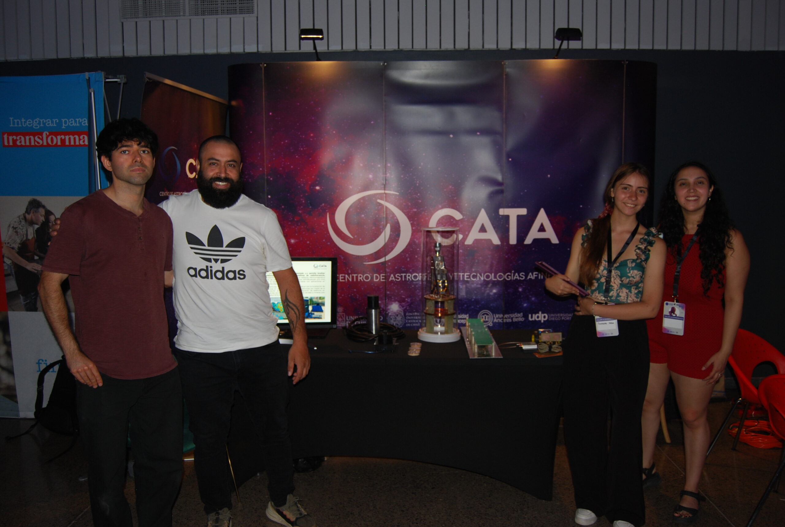 Adicional a la presentación de nuestros investigadores e investigadoras, el CATA estuvo presente durante toda la semana en el Centro CEINA con un stand, moderado por ingenieros, en donde dieron a conocer las diferentes tecnologías desarrollada por CATA en los diferentes laboratorios asociados al Centro, presentándose desde la academia con un enfoque y traspaso a la industria. Esto logró demostrar que, el conocimiento que utilizan astrónomos, astrónomas e ingenieros asociados que se enfocan en instrumentación astronómica, puede brindar apoyo en los diversos problemas que la sociedad y la industria pueda tener, entregando soluciones acorde a cada necesidad.