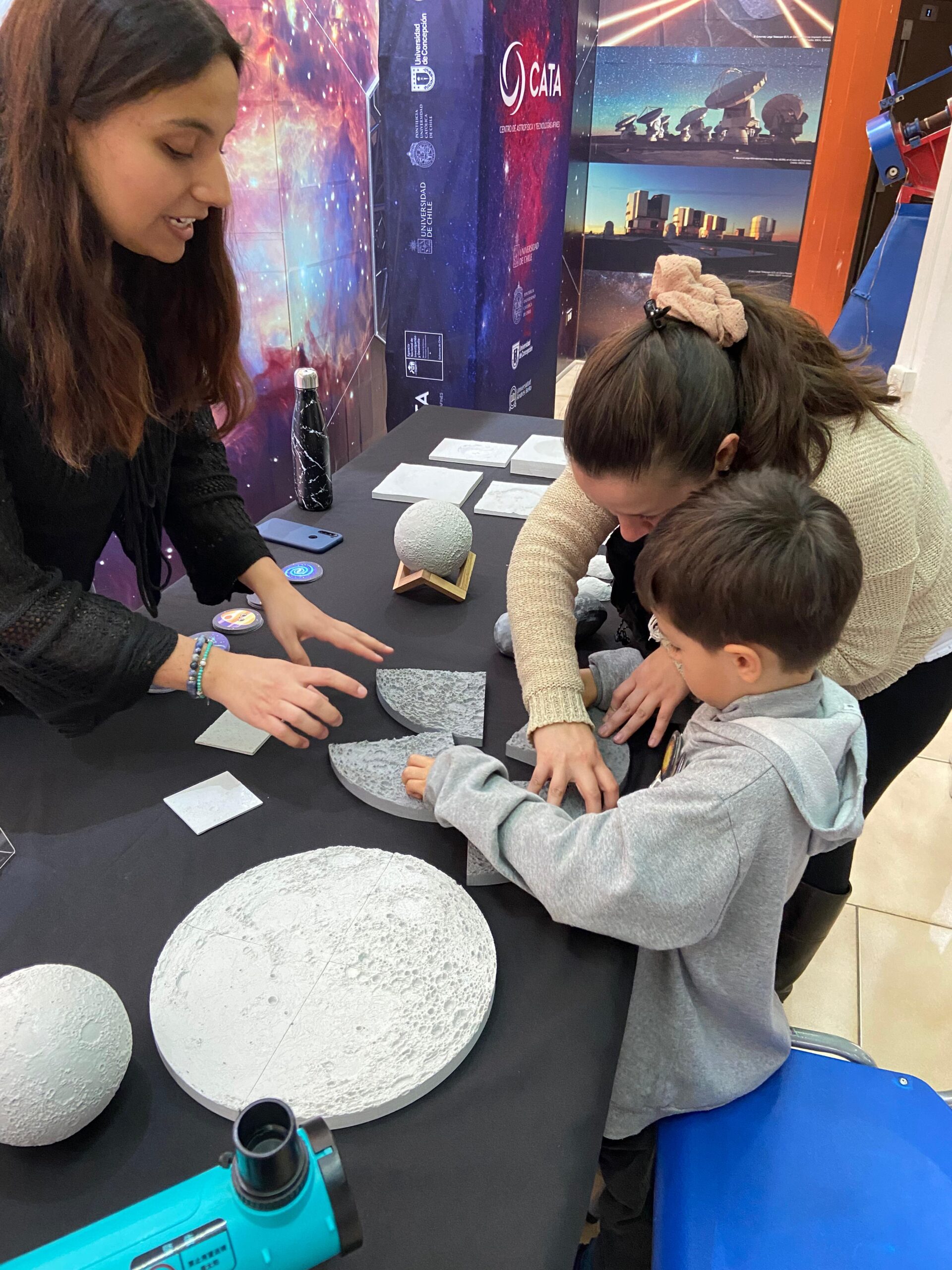 Por último, José Utreras dió un balance positivo de la participación de CATA en las “100 Horas de Astronomía”. “Las familias que nos visitaron disfrutaron ver y tocar la Luna de cerca, además de tener el tiempo de conversar. Siempre es un placer llevar a cabo actividades de astronomía al Planetario de Santiago. Con tantas personas fanáticas de la astronomía en el mismo lugar aparecen preguntas muy buenas”, concluyó Utreras, Coordinador de Divulgación y Contenidos de CATA.