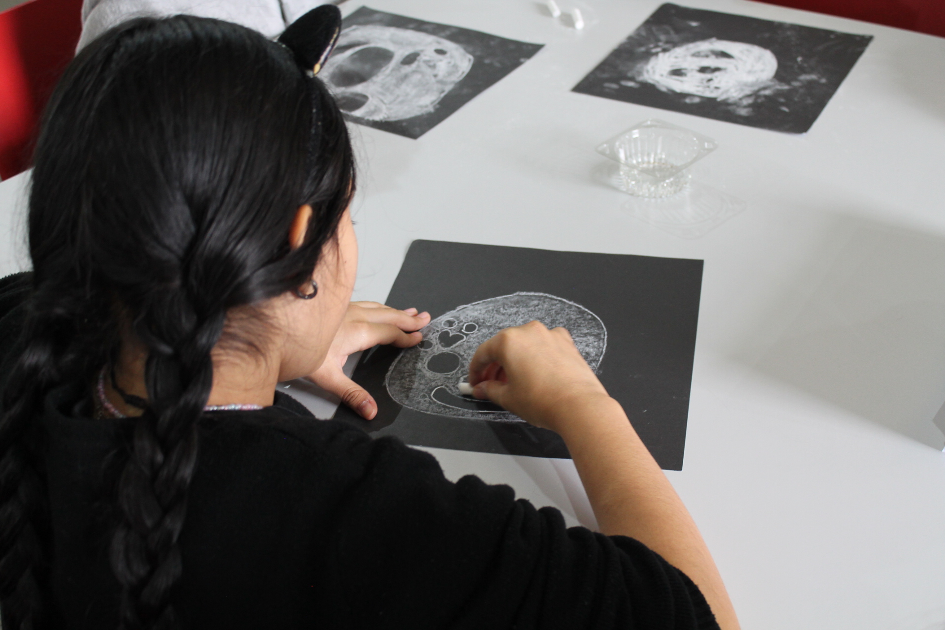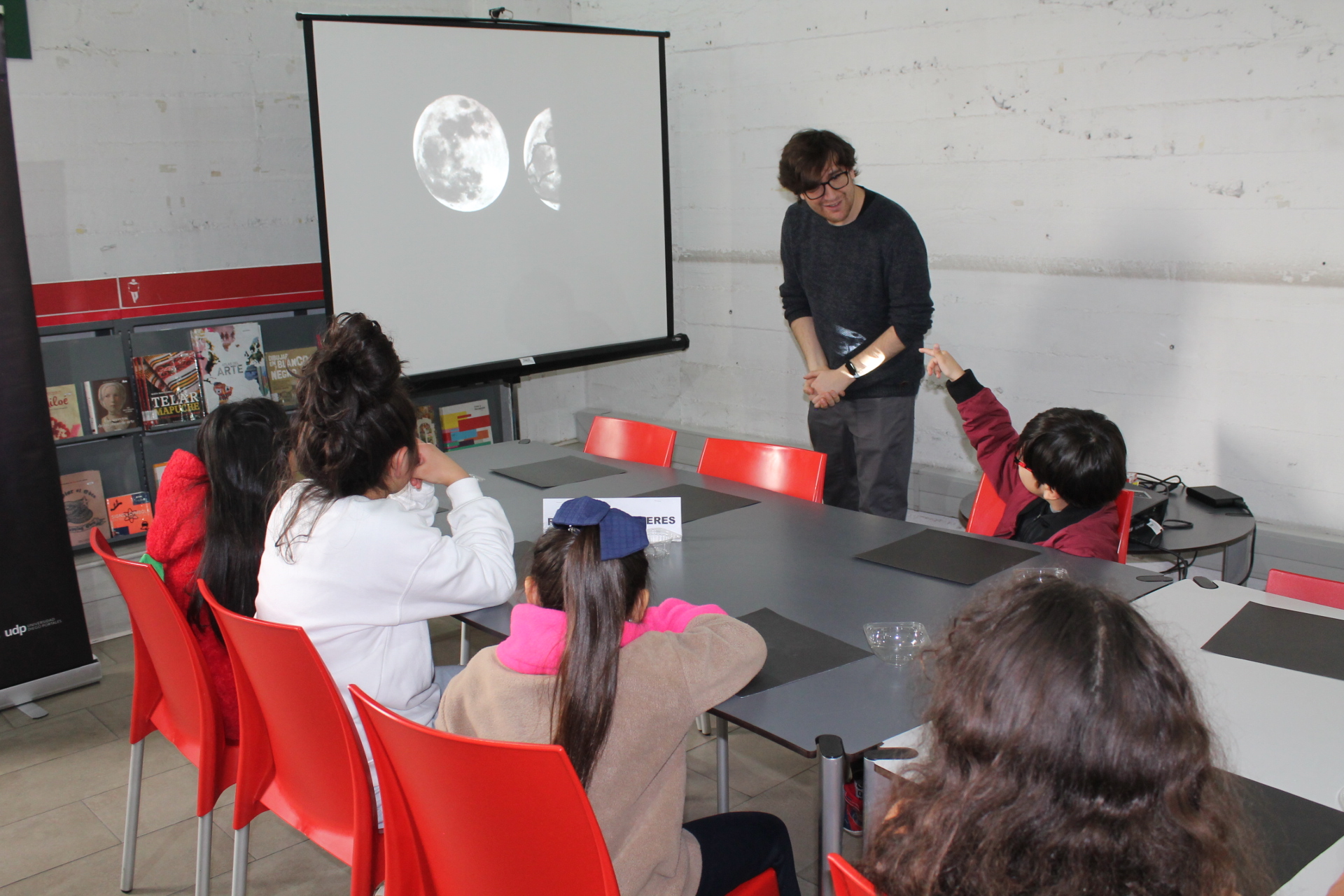 En la primera actividad, a través de sus propios dibujos, los asistentes conocieron detalles sobre el origen de los mares y principales cráteres de nuestro satélite natural, junto a José Utreras.