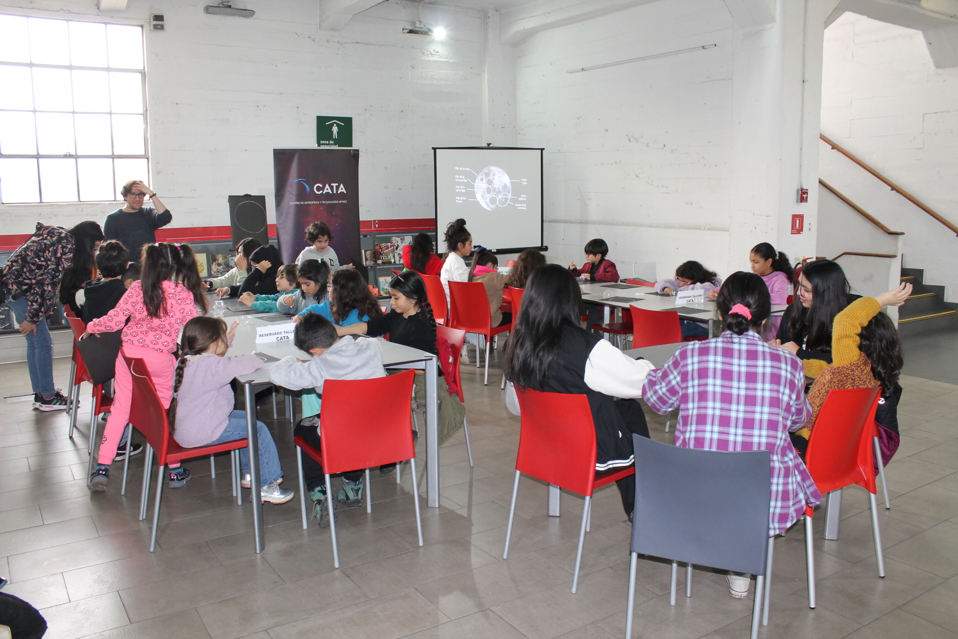 El Centro de Astrofísica y Tecnologías Afines (CATA) realizó en este recinto, que recibe a unos 5.000 visitantes cada día, dos talleres donde los menores pudieron despertar su curiosidad con datos interesantes y llamativos sobre la Luna y los exoplanetas.