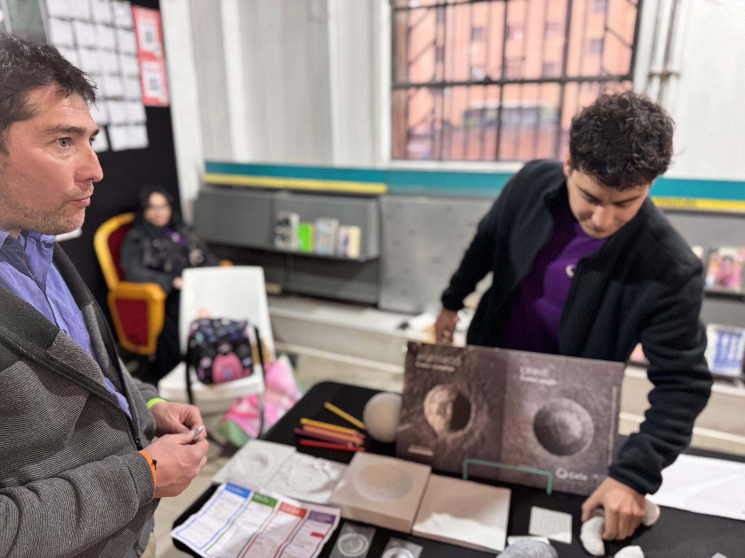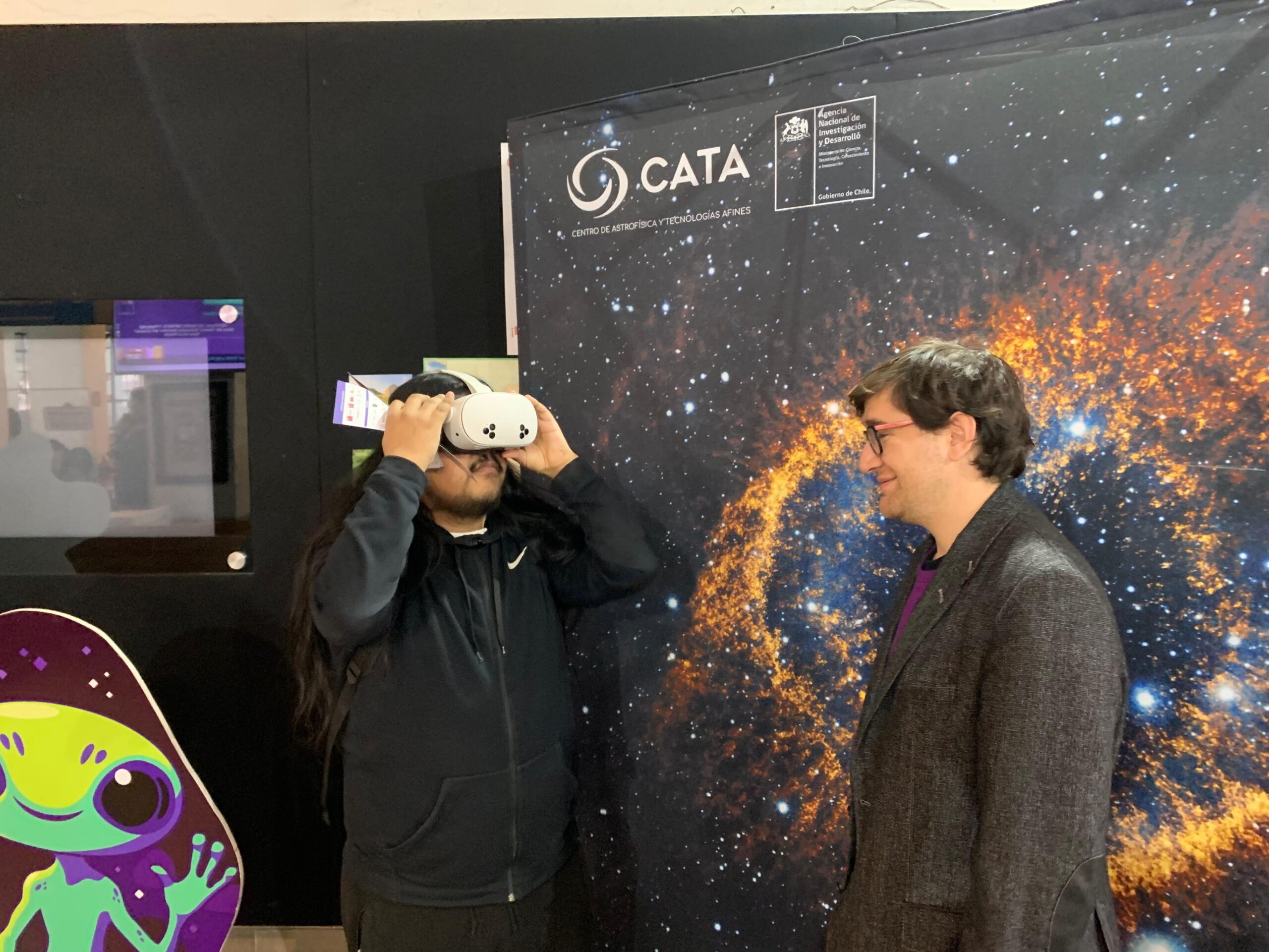 Tracy Catalán, Astrónoma y Divulgadora de nuestro Centro, destacó la recepción del público en el espacio del CATA. “Tuvimos una gran afluencia de público, especialmente de estudiantes y público infantil. Muchos niños y niñas se acercaron por primera vez a la experiencia con lentes de realidad virtual, sorprendidos por el viaje espacial que vivieron y por descubrir, de manera inmersiva, cómo se formó la Luna y cuáles son sus principales características. Además, a través del juego de mesa que presentamos, aprendieron sobre la evolución de las estrellas de forma lúdica y entretenida. Sin darse cuenta, estaban incorporando conocimientos de astronomía mientras jugaban y se divertían”.
