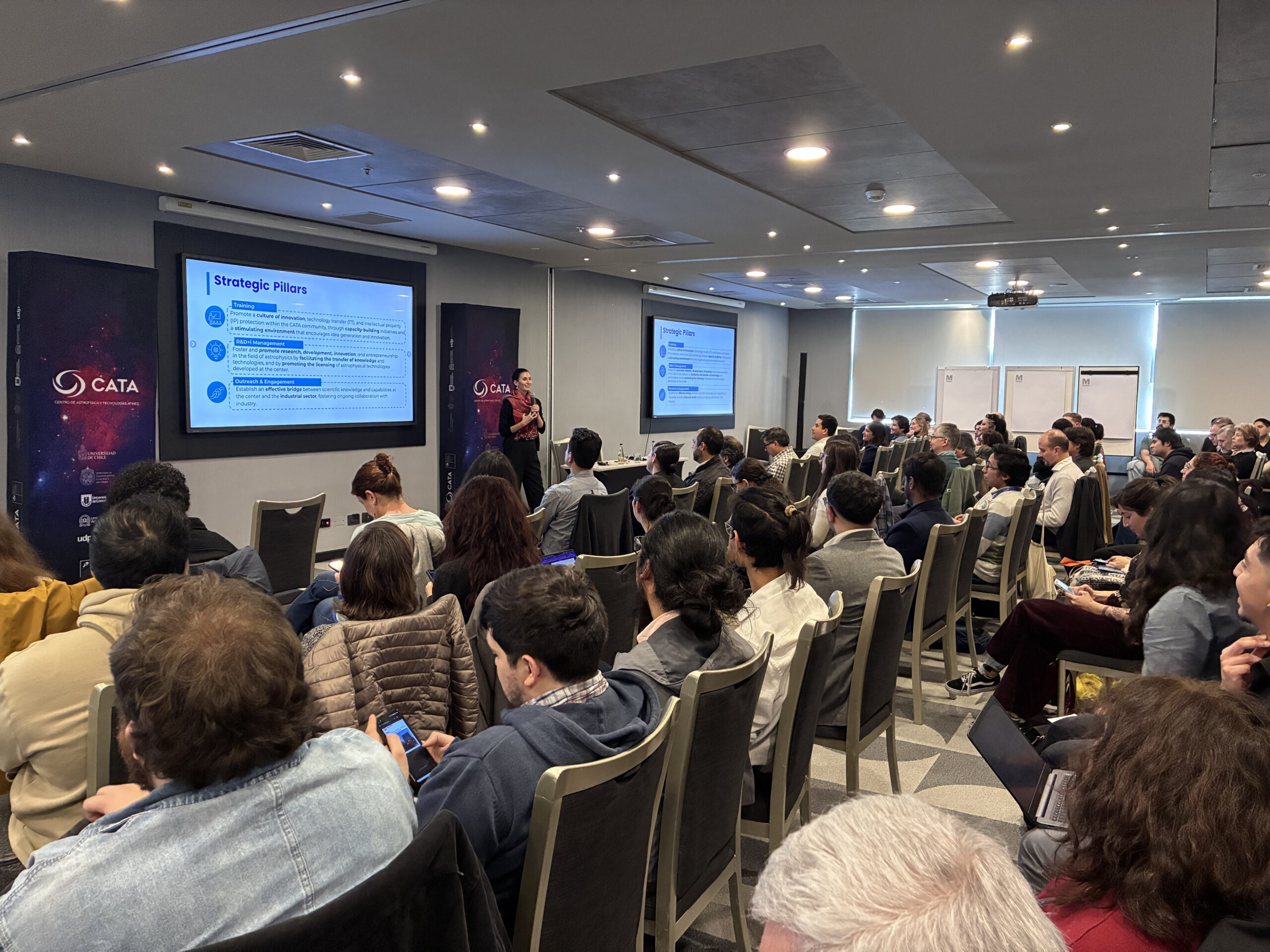 Más de 120 integrantes del Centro de Astrofísica y Tecnologías Afines (CATA) entre investigadores, ingenieros, estudiantes y colaboradores se reunieron el 7 y 8 de agosto en Santiago para participar en el Annual Meeting 2025, el encuentro que convoca a la comunidad del Centro para reflexionar sobre sus avances, debatir desafíos y trazar la hoja de ruta para los próximos años.
