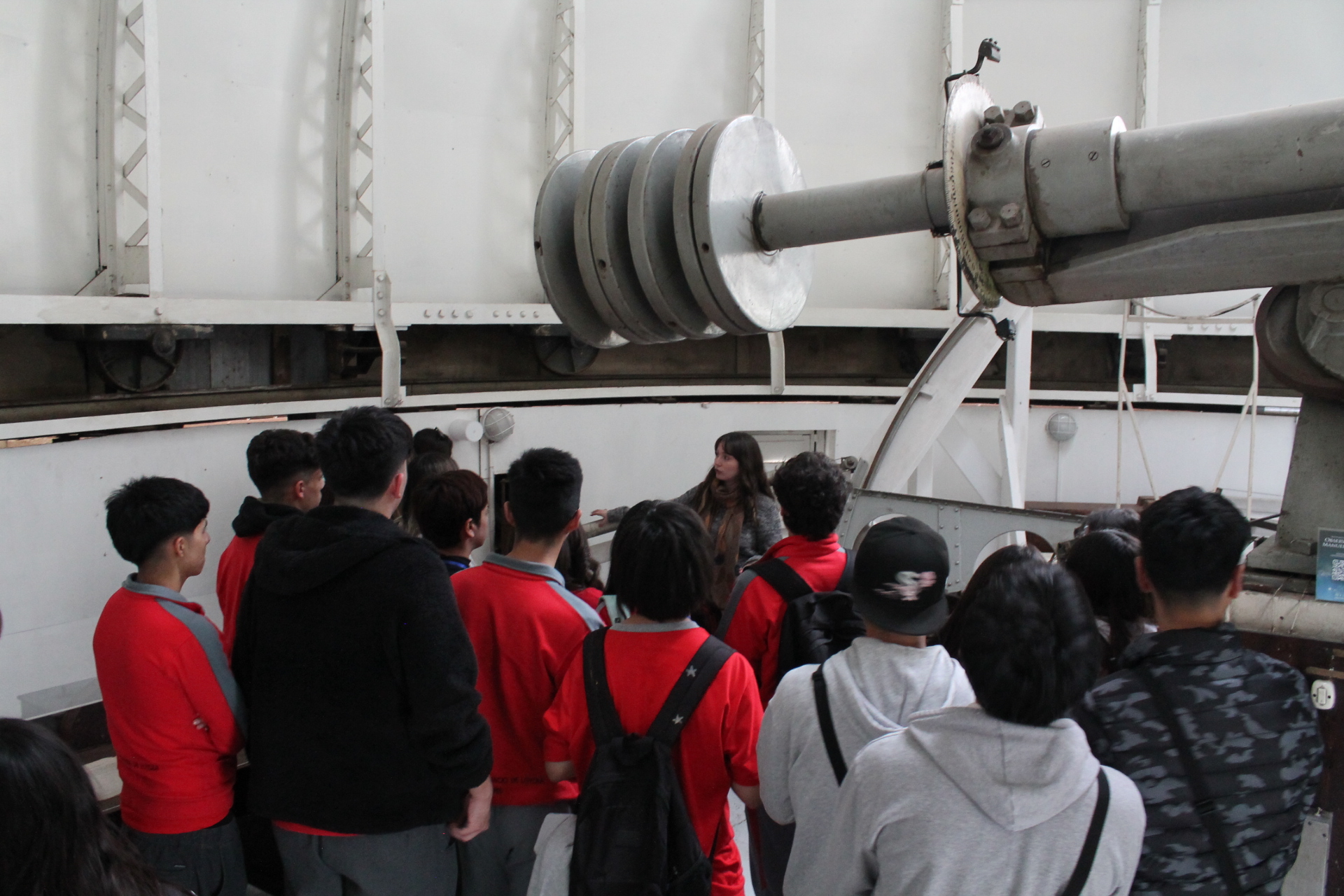 Así los estudiantes de tercero y cuarto medio de este recinto educacional recorrieron su cúpula y vieron el centenario telescopio con un espejo primario de 93 cm de diámetro que pesa 252 kg, que ya ni se compara a otros instrumentos más modernos con lentes de más de 40 metros.