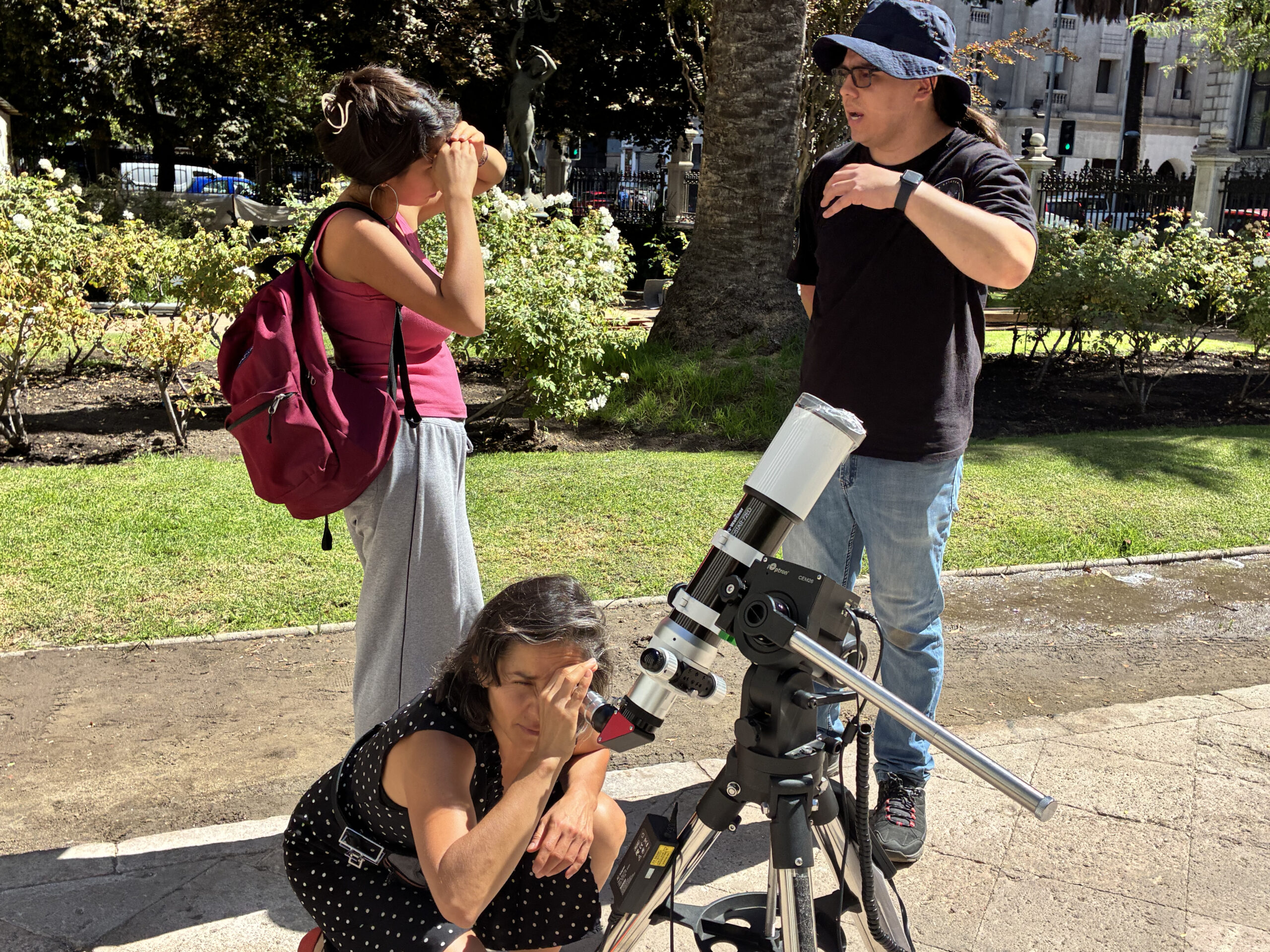 After a solar observation session with telescopes in the garden of the former Congress and recreational activities organized by LEGO Education, the day continued with a presentation by CATA researcher and member of the Institute of Astrophysical Studies of the Diego Portales University, Manuel Aravena, entitled “Revealing the Cosmic History: Galaxies, Expansion and the ELT”. In his presentation, the researcher explained the advances in the study of galaxies from telescopes such as ALMA and James Webb, in addition to detailing the impact of the Extremely Large Telescope (ELT), the world’s largest telescope under construction in Chile. “This highly sensitive telescope will boost the observing capacity of any other current telescope by up to 15 times. It will be able to detect biomarkers in planetary atmospheres, such as water and oxygen molecules, which are key to the existence of life. Within the next 20 to 30 years, the ELT could lead to the discovery of life on other planets,” said Aravena.
