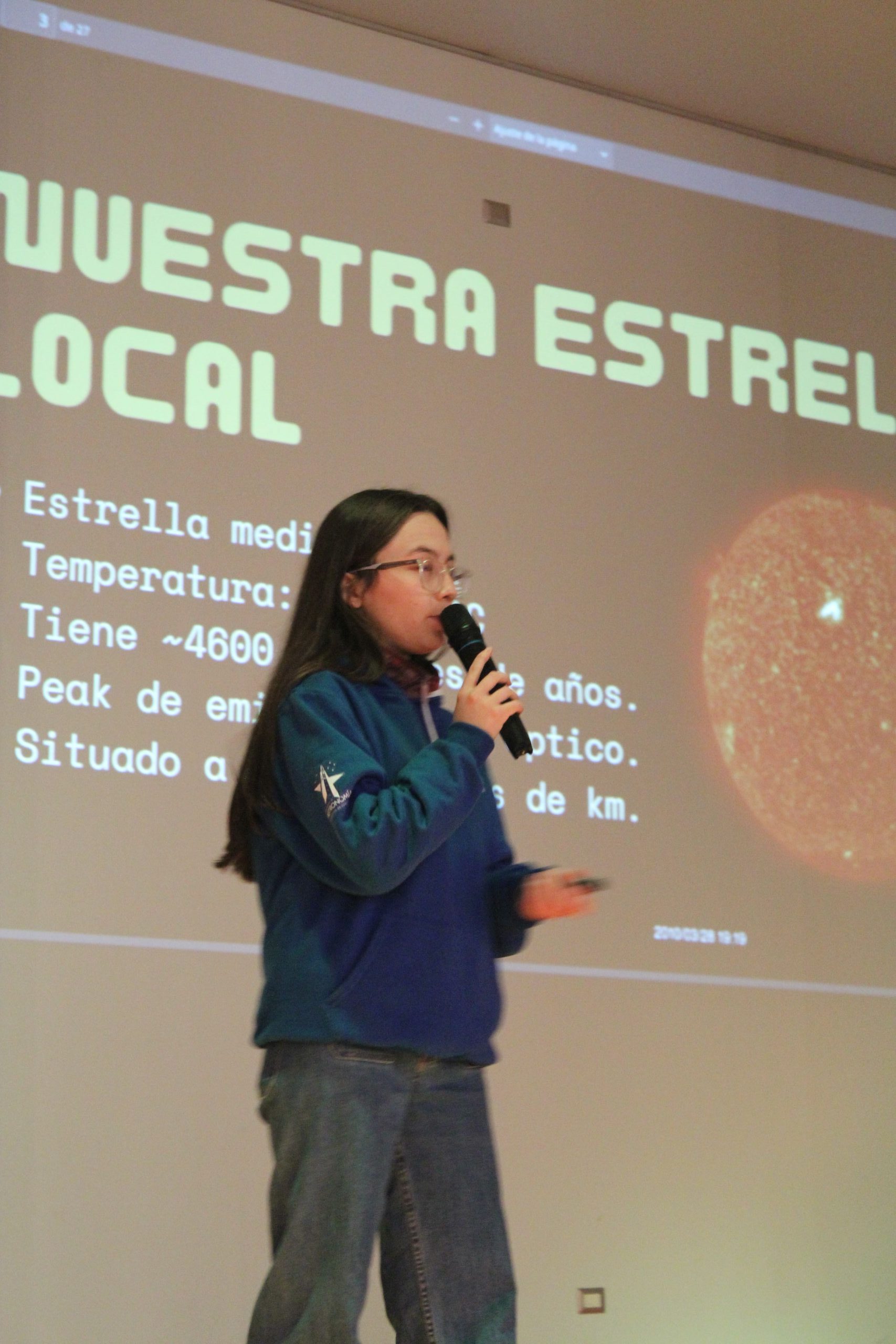 The day continued with a large-scale lecture given by Fernanda Ancamil, a member of EDA. The lecture, titled “The Sun, Solar Flares, and Sunspots,” took place in the auditorium of Angol High School and was attended by nearly 300 students from the host institution, as well as from Mozart School, San Francisco de Asís Angol, and Angol Industrial High School.