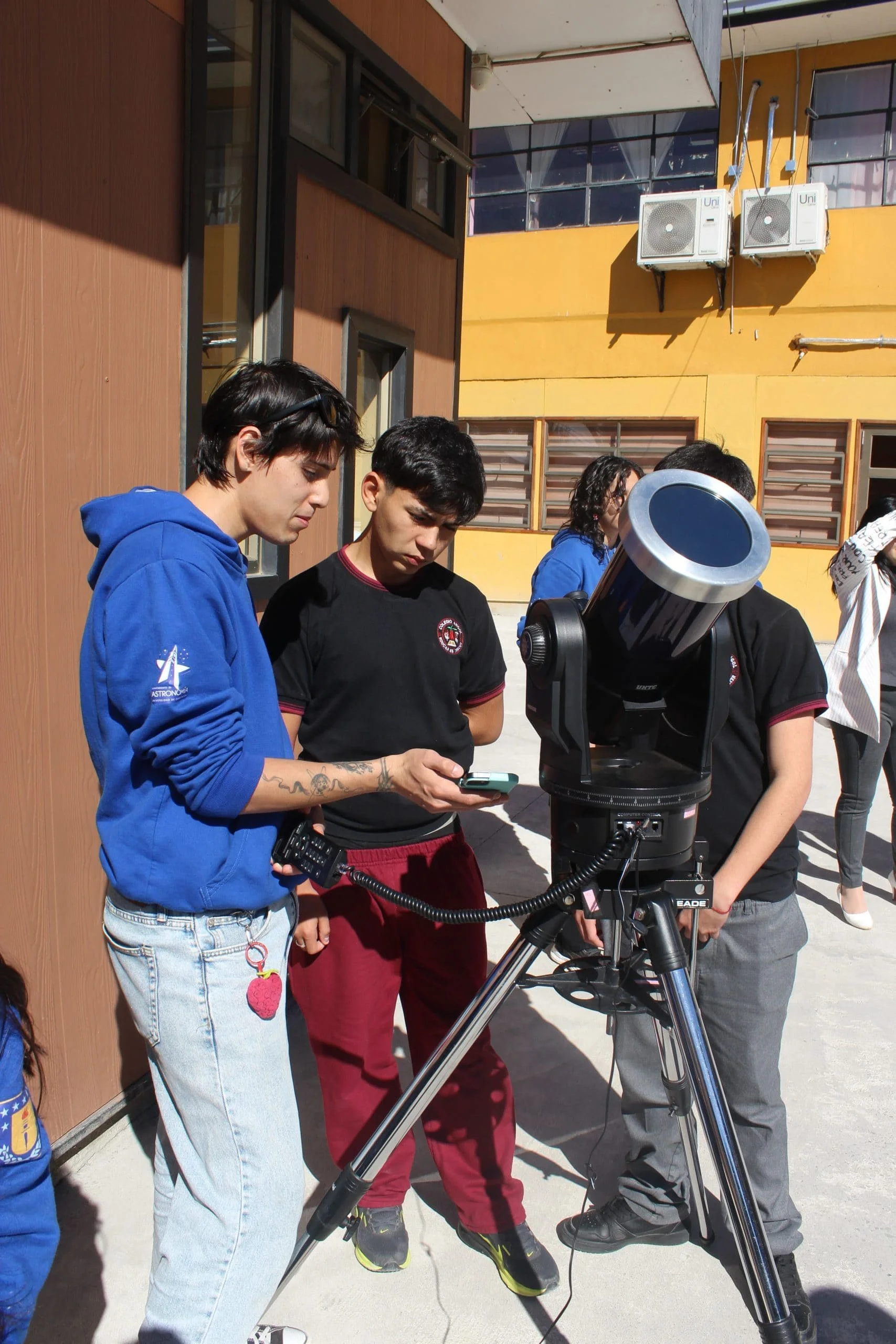 Finally, the visit concluded with a solar observation session led by members of the Astronomy Outreach Team. Using telescopes, 11th-grade students were able to observe the Sun and identify its sunspots.