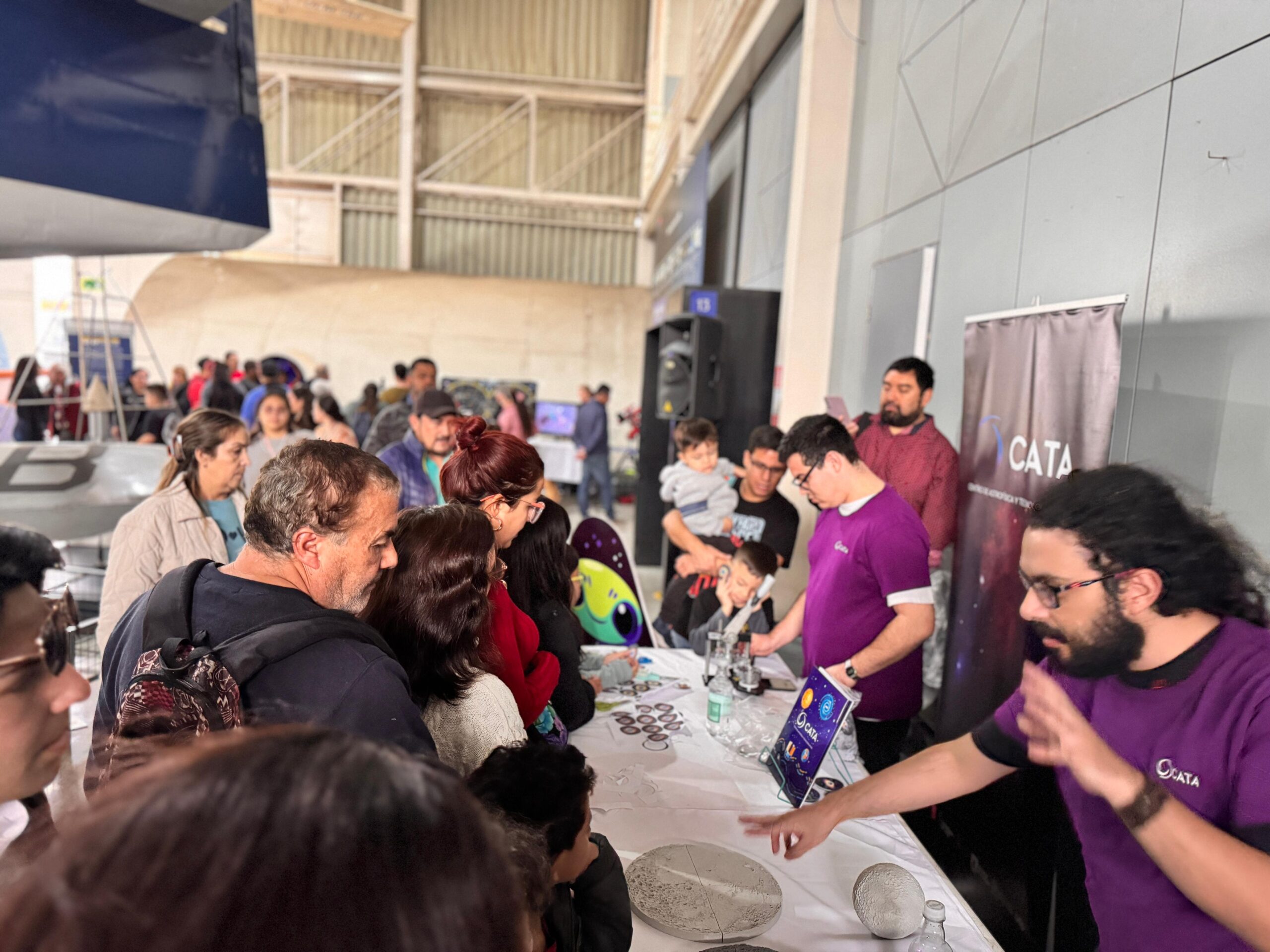 In addition, the public was able to interact with the CATA stand, which presented different activities, including an interactive experience that included a large-scale inflatable moon, virtual reality 3D viewers, 3D reproductions of the natural satellite, a lunar puzzle, a badge-making machine and iconic elements such as the “spider” panel with the image of the Helix nebula, together with the “Alien” and “Astronaut” scale figures. Sunday’s event was well attended, with more than 2,000 people in attendance.