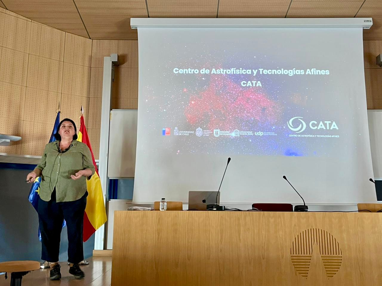 Geologist and Associate Researcher at the Center for Astrophysics and Associated Technologies (CATA) and academic at the Universidad Católica del Norte (UCN), Millarca Valenzuela, recently visited the facilities of the Center for Astrobiology (CAB) in Madrid, Spain, with the aim of establishing collaborations in the analysis of meteorites from the Atacama Desert and sharing the advances of CATA’s Area 6 of research: Exoplanets and Astrobiology.