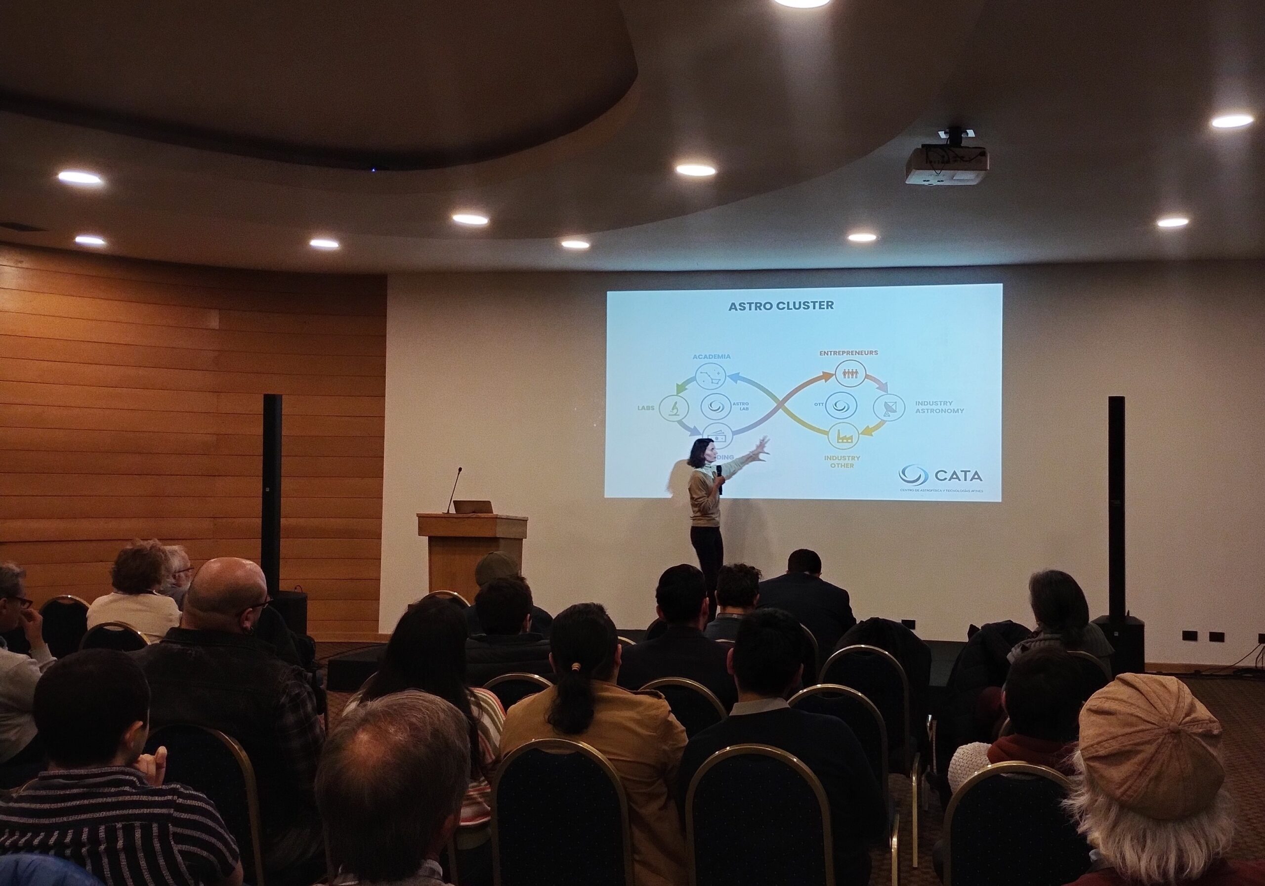 Among them was Elise Servajean, general manager of the Center for Astrophysics and Related Technologies, CATA, who gave a talk on “Technology transfer at CATA: from astronomy to industry”. On the occasion, she presented the advances in this area at the Center, the new technologies that are being developed, the pilots that are being carried out and the actions aimed at promoting the link with various industries. In addition, the AstroCluster project was presented, which seeks to strengthen the capabilities of the astronomical industry in Chile, through the development of dual technological solutions that can also be used in other national productive areas.