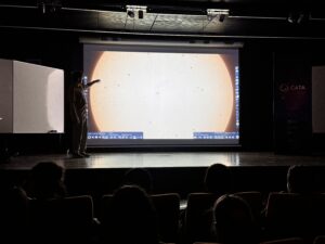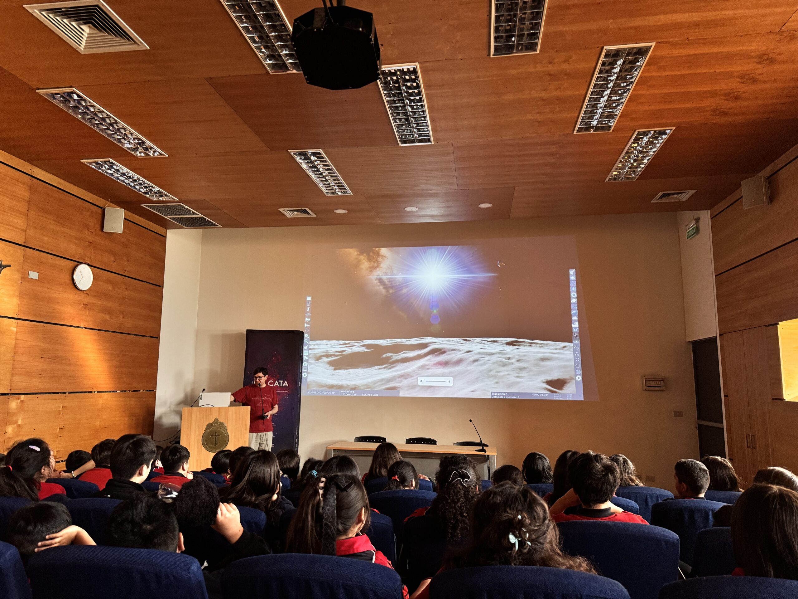 During the event, CATA astronomers and science communicators José Utreras and Tracy Catalán gave immersive talks on the Solar System, using the astronomical software “Space Engine.” as a support tool. Through this experience, attendees explored different celestial bodies and understood astronomical phenomena through a visual and dynamic narrative.