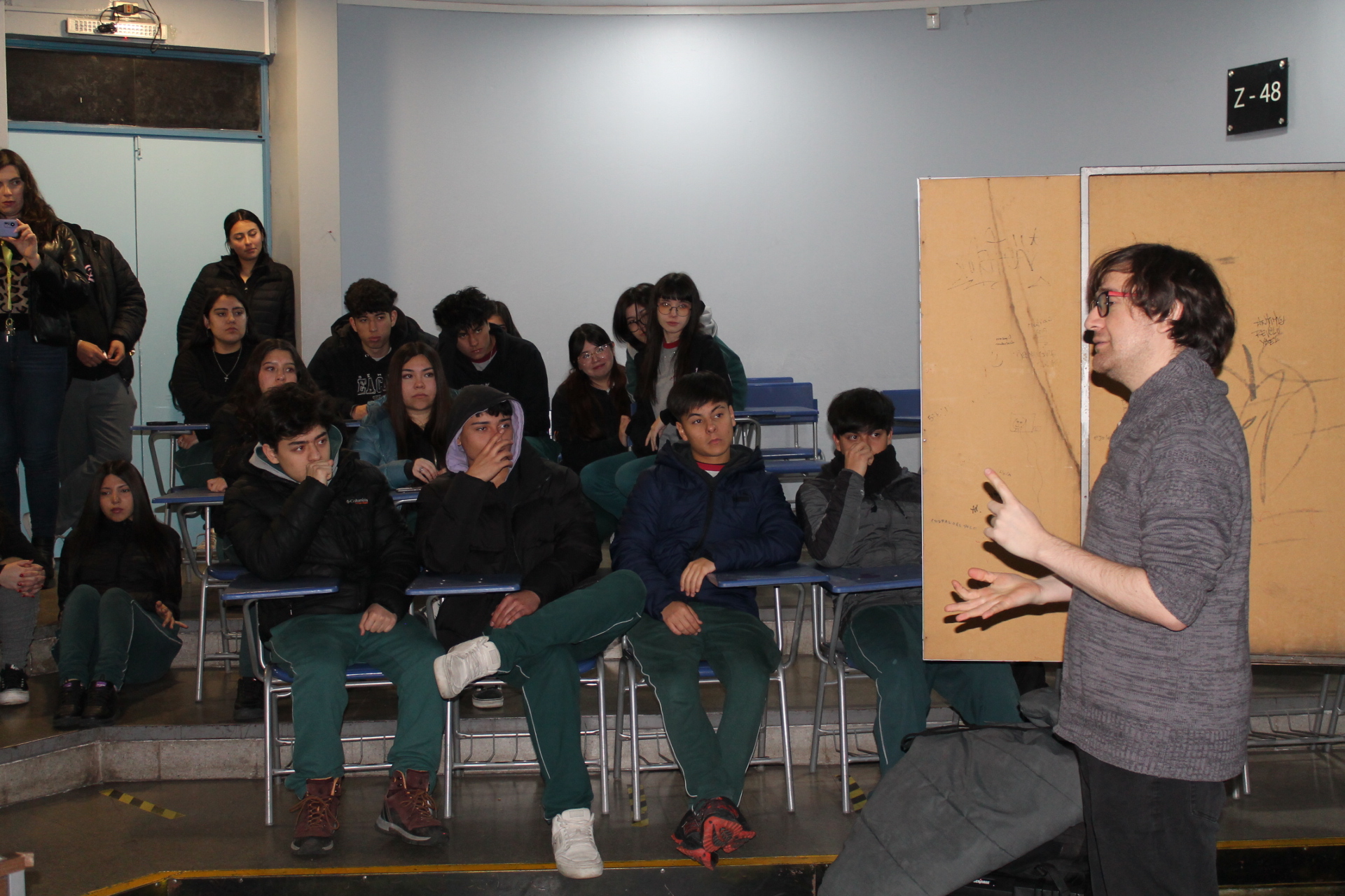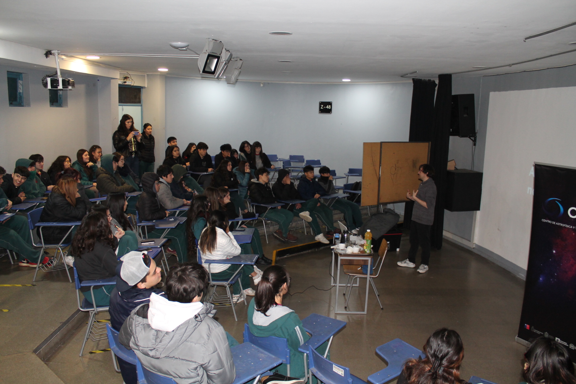 Within the framework of extracurricular activities, the Biology teacher of this establishment, Moira Díaz, summoned a large number of students interested in learning more about astronomy, to join the presentation of the person in charge of Contents and Dissemination of the Center for Astrophysics and Related Technologies, CATA, José Utreras.