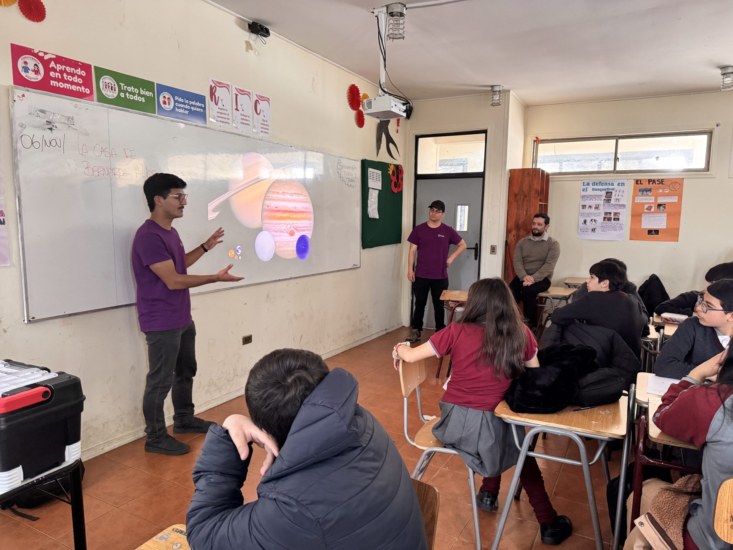 Durante dos días se llevaron a cabo los talleres “¡Vamos a dibujar la Luna!” y “Crea tu Nebulosa” en las salas de clases del establecimiento educacional. Paralelamente, el equipo de CATA presentó las charlas “¿Existen los agujeros negros?” y “Big Bang: La expansión del universo”.
