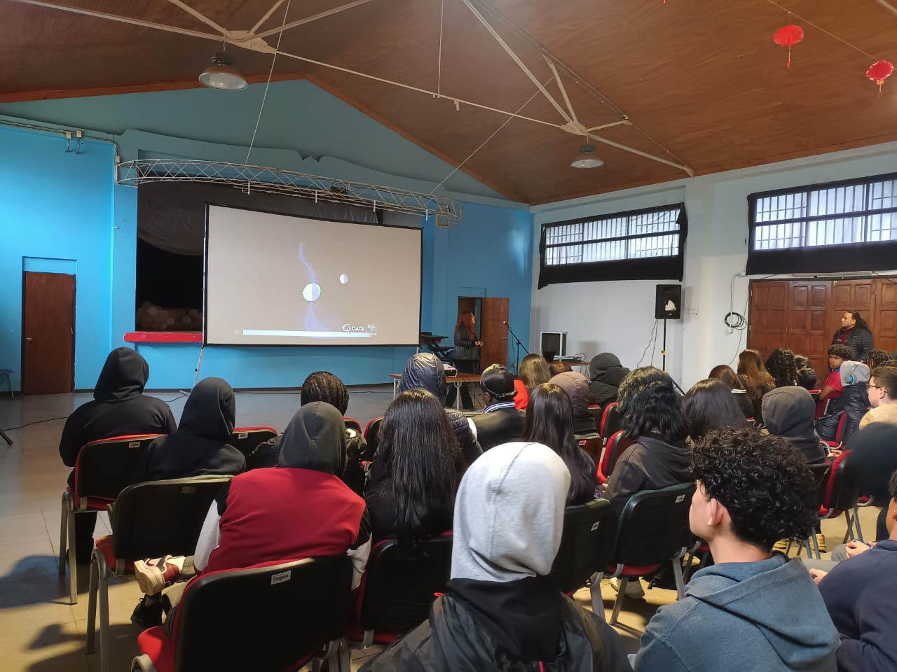 Finalmente la docente destacó el rol de nuestro Centro en actividades de divulgación científica. “Creo que es sumamente significativo que el CATA haya realizado la charla, como el colegio es TP (técnico profesional) a muchos estudiantes los ingresan para empezar la vida laboral apenas terminan cuarto medio, por lo tanto, muchas veces no hay más proyección, así que abrir espacios de este tipo, permite tener acercamiento con astrónomos y con profesionales de otras áreas son excelentes actividades para abrir mundos”, concluyó.