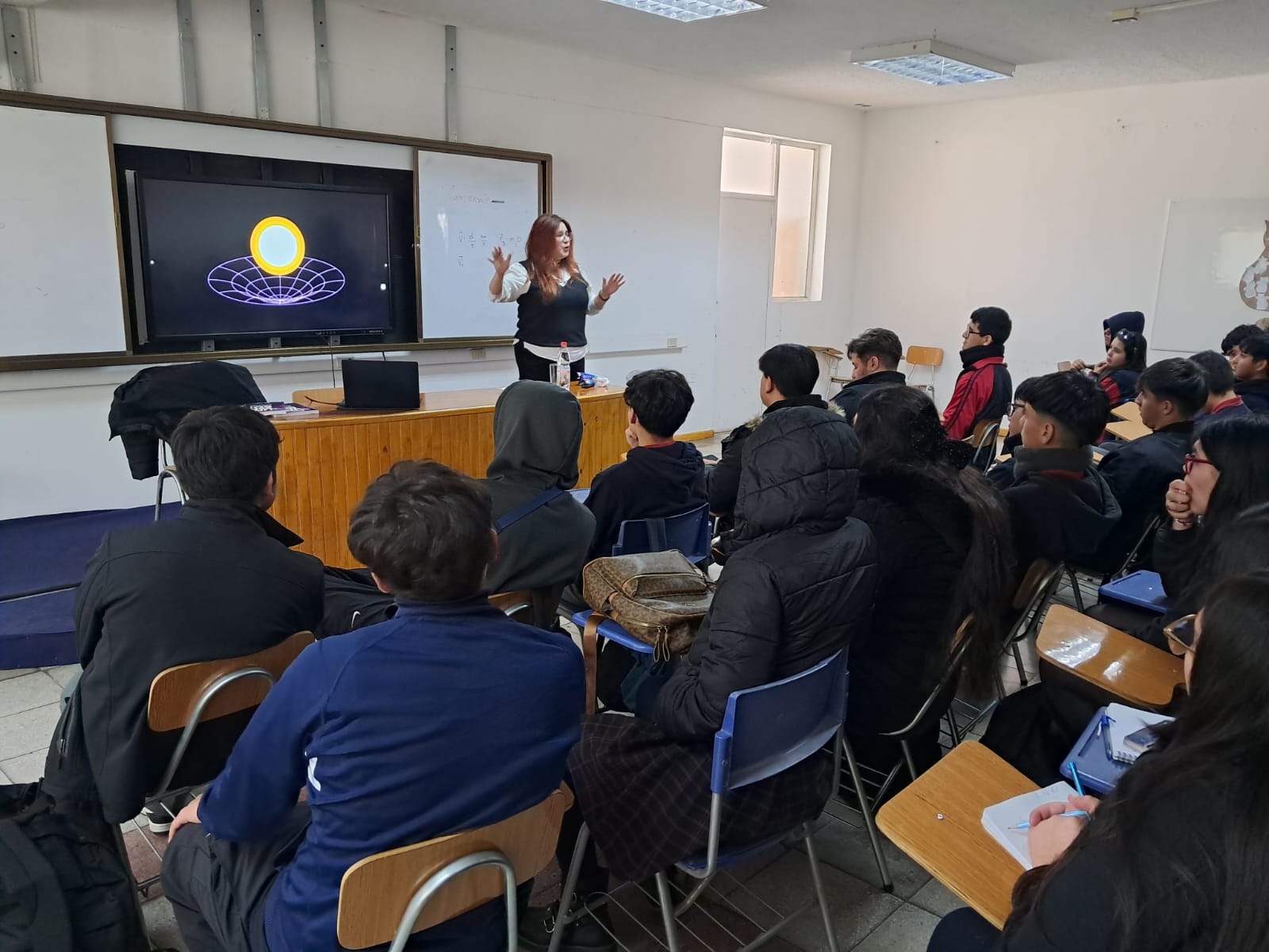 El Centro de Astrofísica y Tecnologías Afines (CATA) realizó la charla “¿Existen los agujeros negros?” en el Colegio María Griselda Valle, de la comuna de El Bosque, donde 40 estudiantes de segundo a cuarto año de enseñanza media participaron en la actividad presentada por Tracy Catalán, astrónoma y divulgadora de nuestra institución.