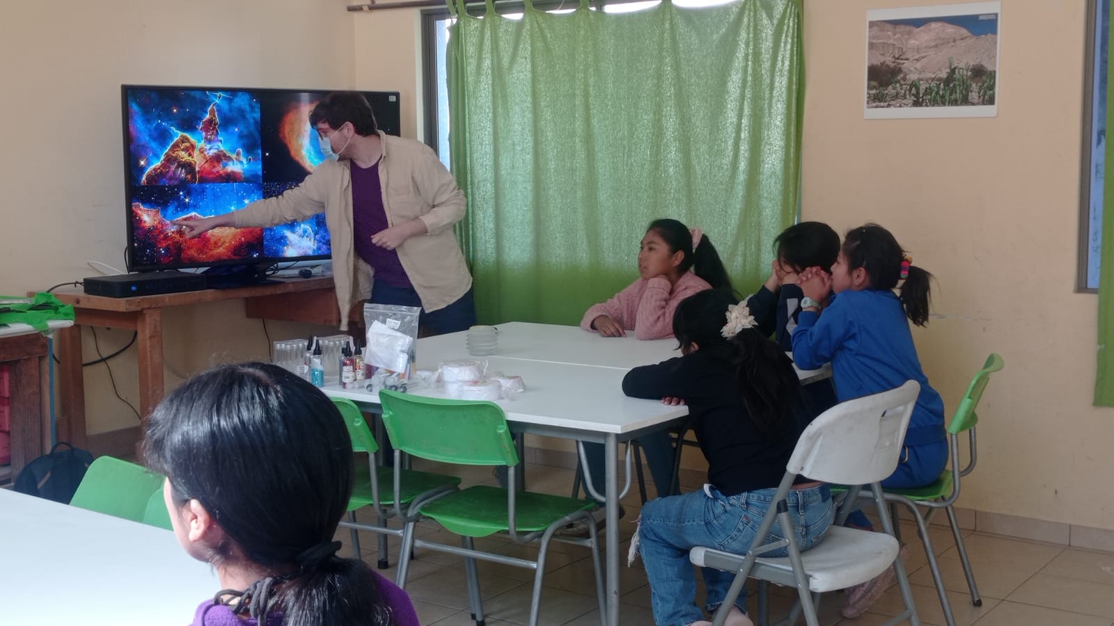 Las actividades comenzaron en la comuna de Camarones, donde el equipo del CATA trabajó con estudiantes de los pueblos de Codpa y Esquiña a través del taller “Crea tu Nebulosa”. Esta actividad permitió a estudiantes de enseñanza básica de la Escuela de Esquiña, la Escuela de Illapata y el Liceo de Codpa comprender la naturaleza y diversidad de estos objetos cósmicos mediante una experiencia didáctica y práctica, creando su propia nebulosa.
