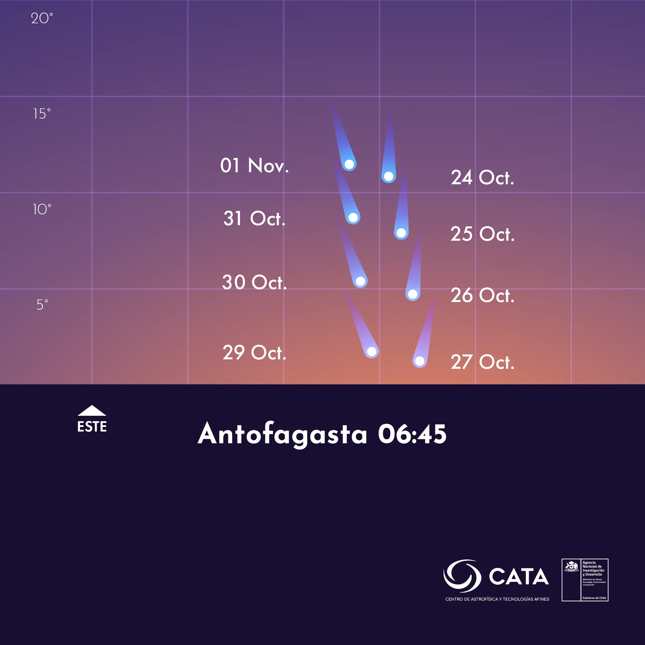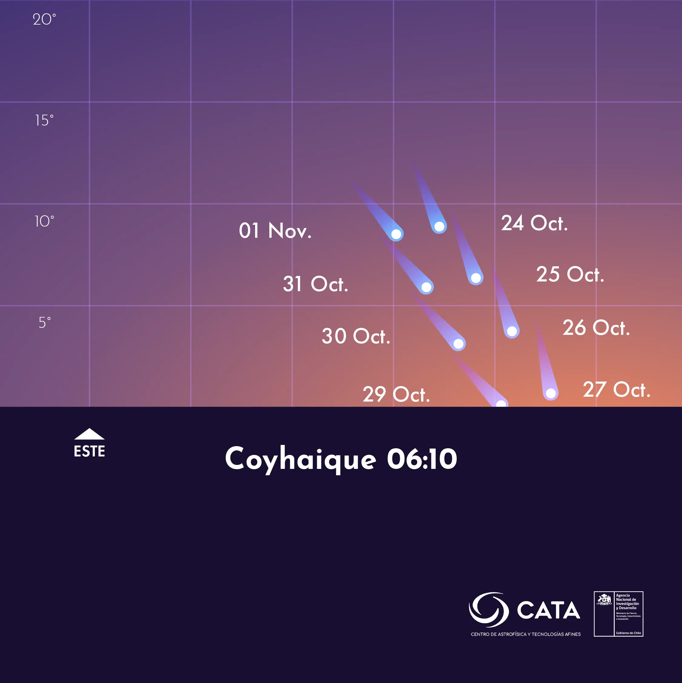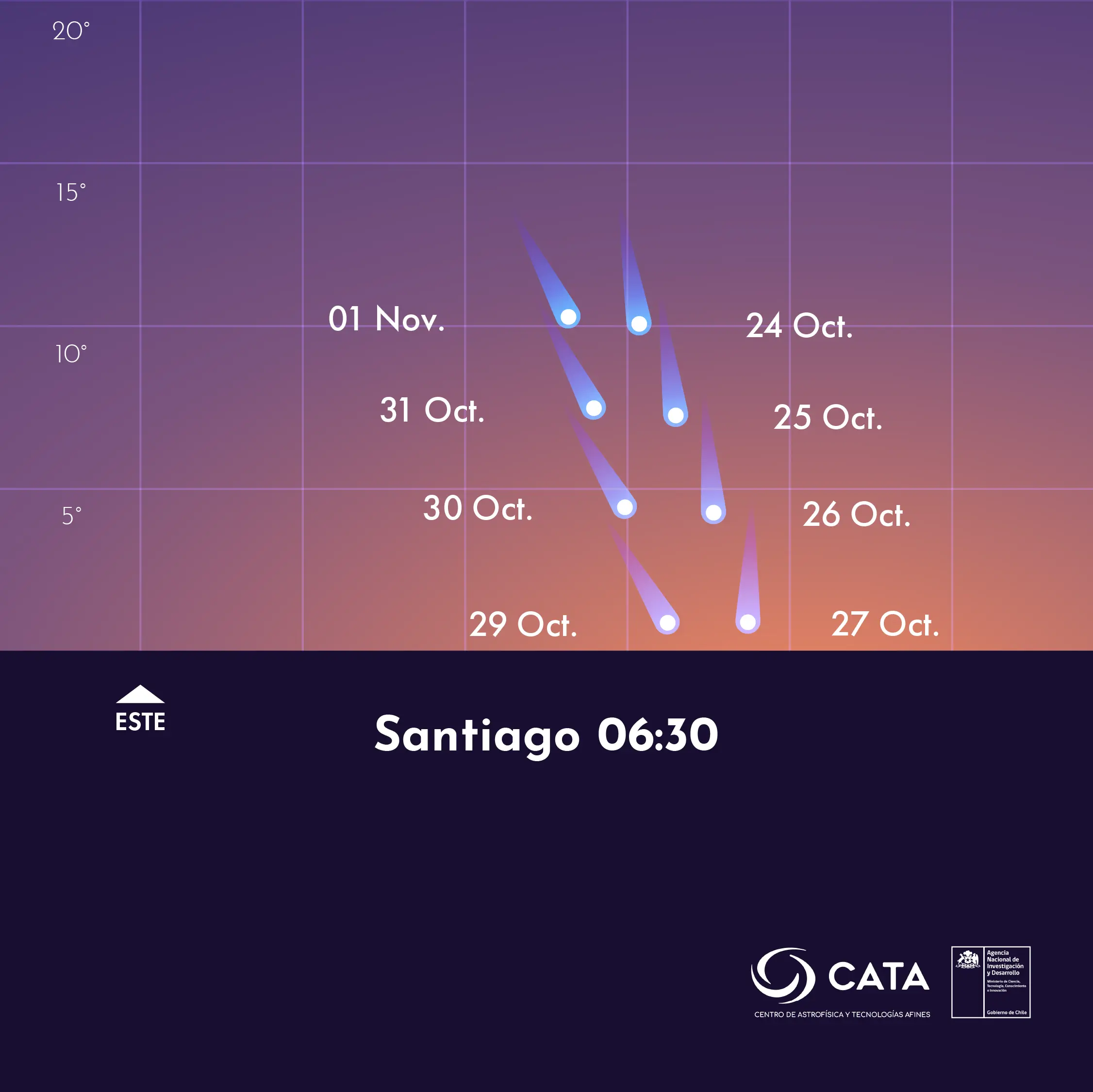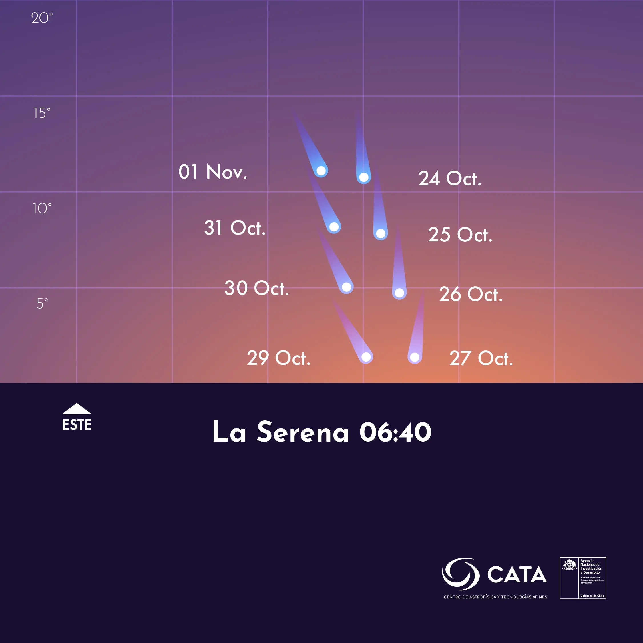 “Su mayor acercamiento al Sol será el día 28 de octubre, el día de mayor brillo, aunque imposible de observar directamente al estar junto al Sol. Mientras que el día 24 de octubre tendrá su mayor acercamiento a la Tierra. A diferencia de Tsuchinshan-Atlas la ventana de tiempo para observarlo será corta, justo los días previos y posteriores al 28”, agrega José Utreras del CATA.