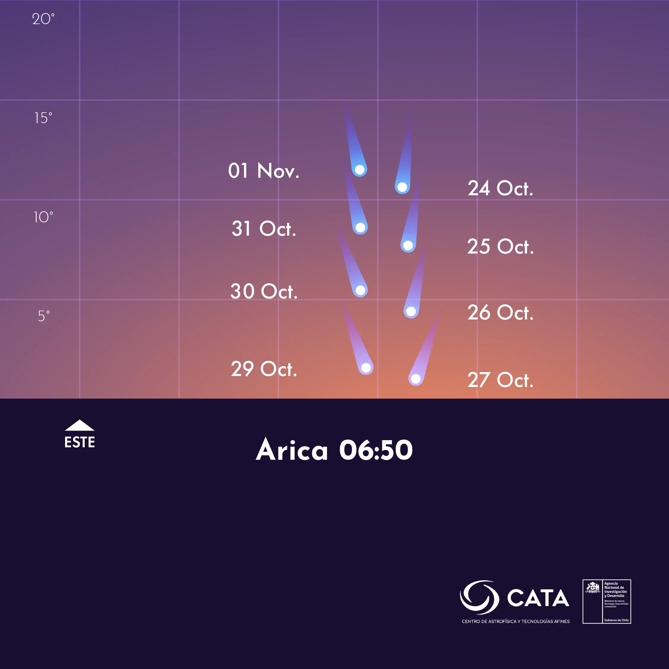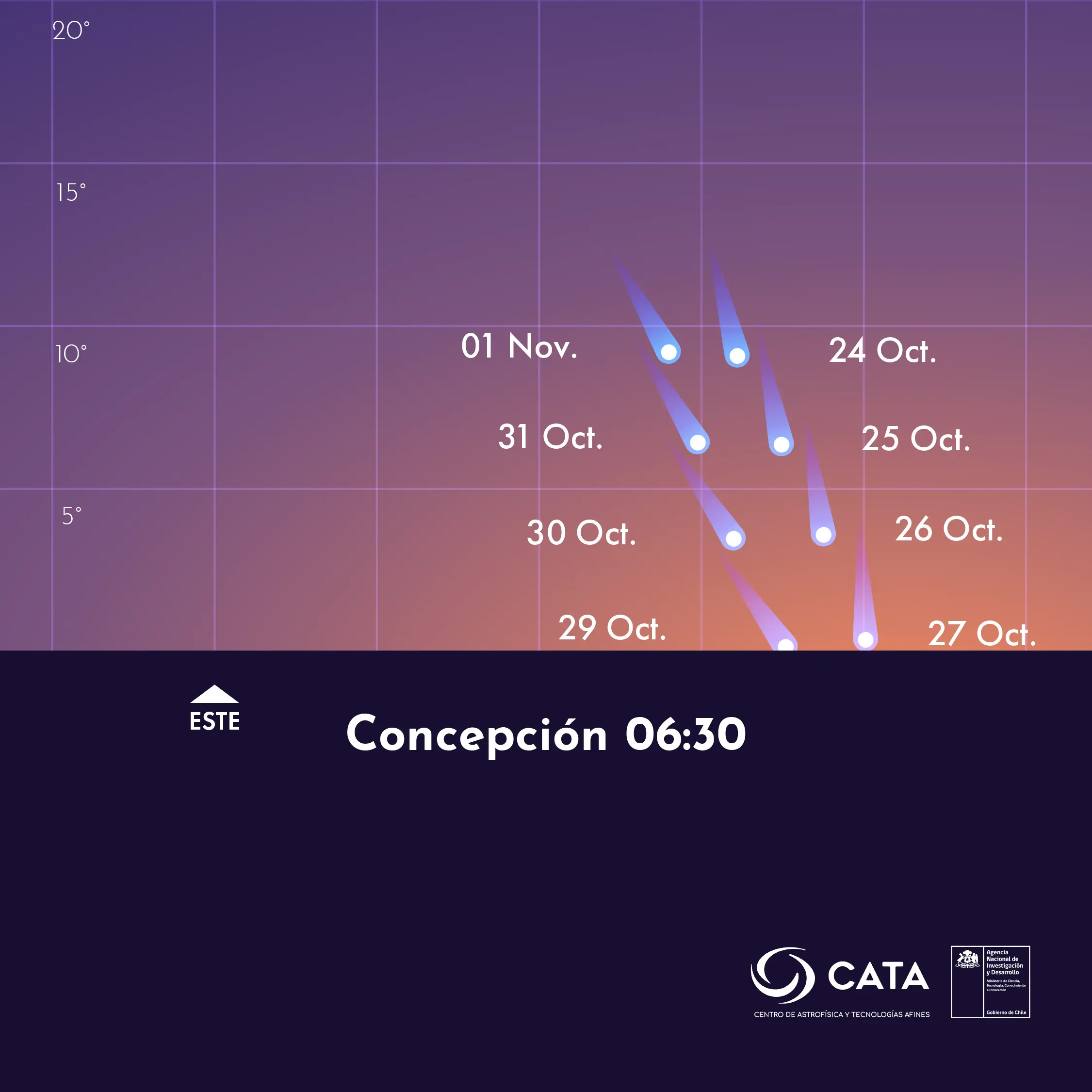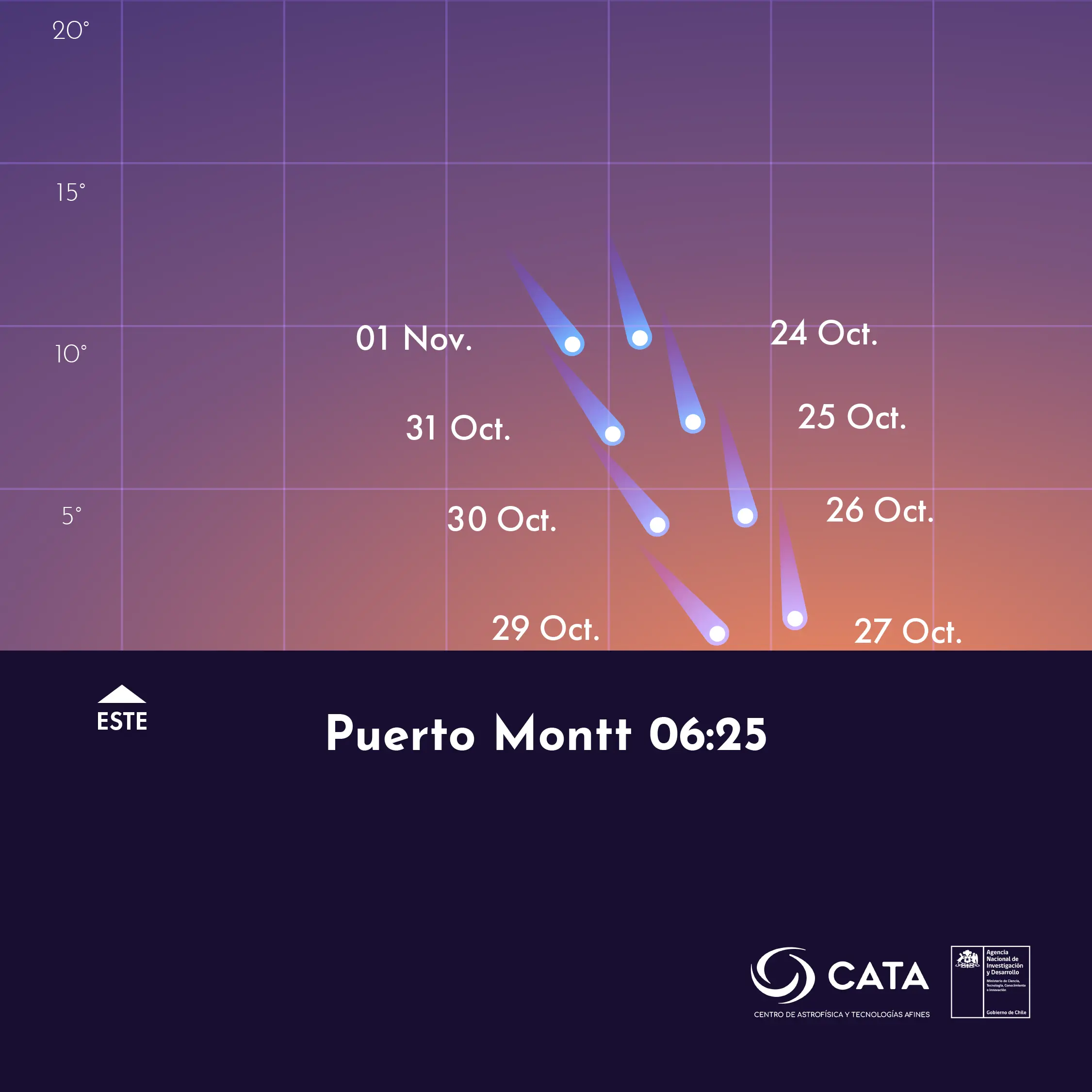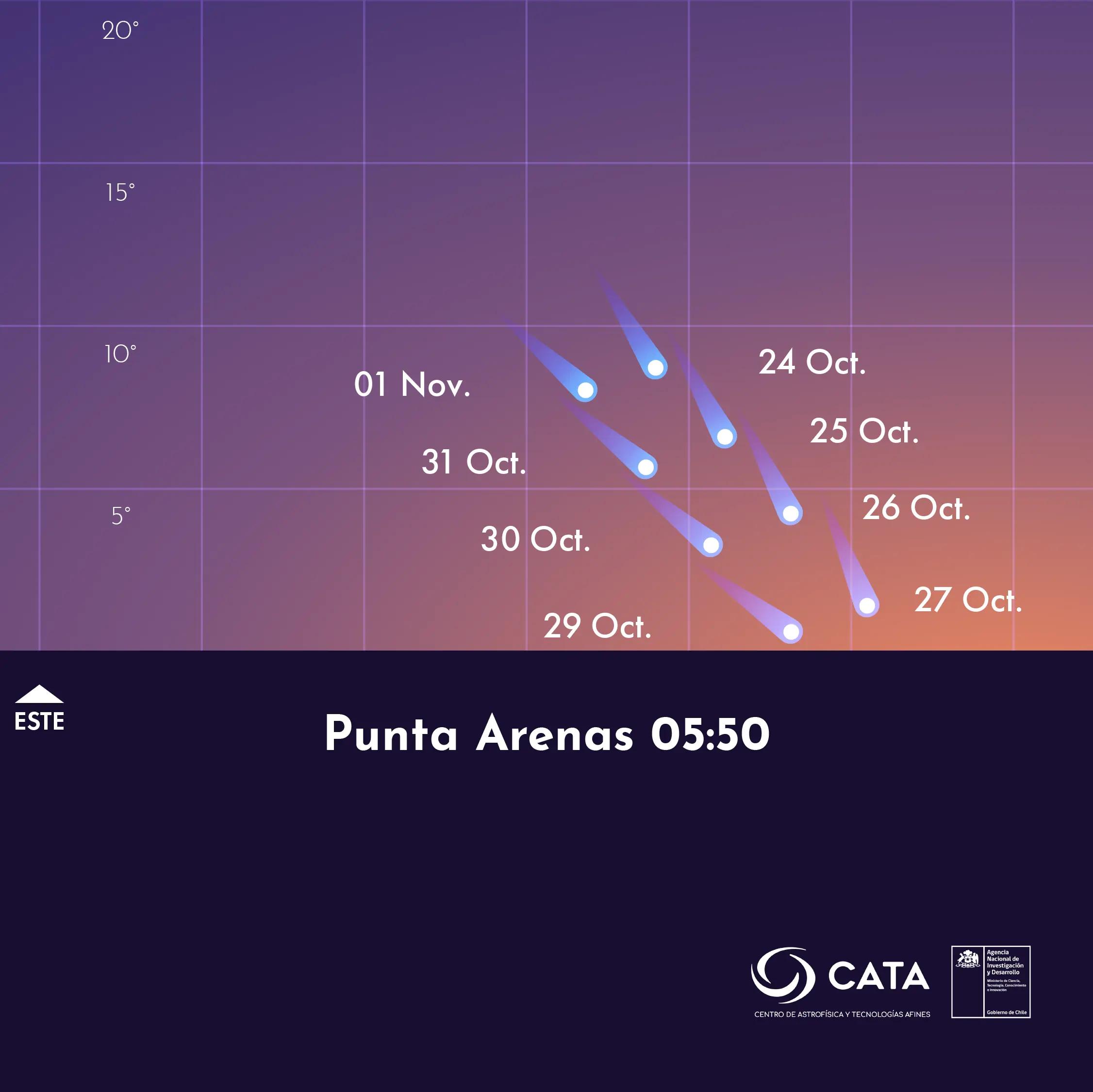 “Su mayor acercamiento al Sol será el día 28 de octubre, el día de mayor brillo, aunque imposible de observar directamente al estar junto al Sol. Mientras que el día 24 de octubre tendrá su mayor acercamiento a la Tierra. A diferencia de Tsuchinshan-Atlas la ventana de tiempo para observarlo será corta, justo los días previos y posteriores al 28”, agrega José Utreras del CATA.